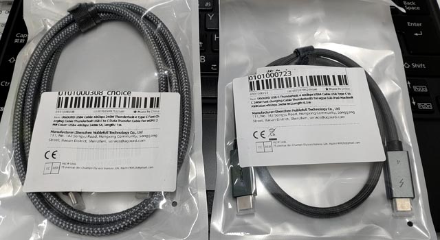 あと、AliExpressで注文していたUSB4/Thunderbolt対応ケーブルが2本届いた。