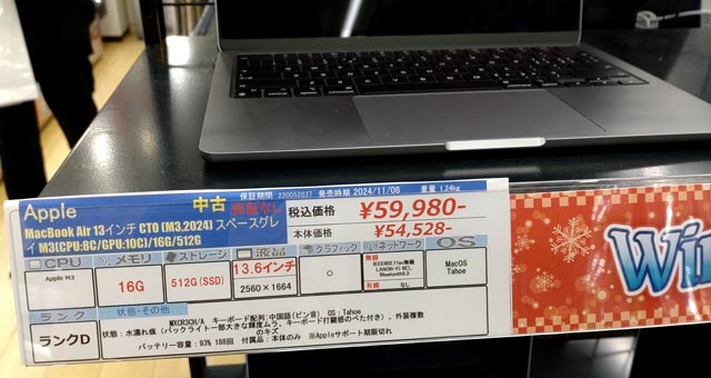 メモリが24GB、ストレージは512GBのモデルで、送料込みで13万円ジャストだ。