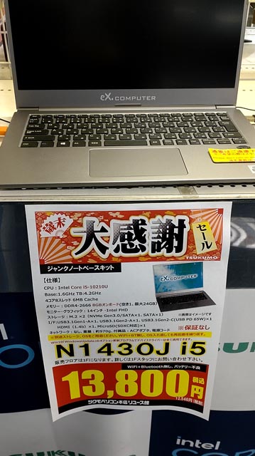 ツクモへ行くと第10世代のストレージ無しノートのジャンクが13,800円だった。