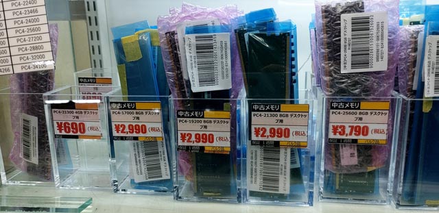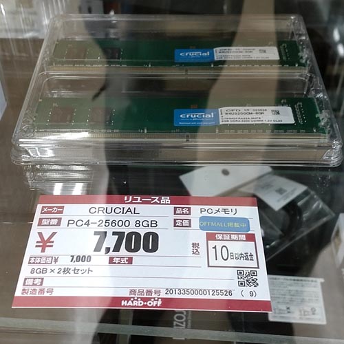 Clucial製のDDR4-3200 8GB×2枚が中古で7,700円だ。