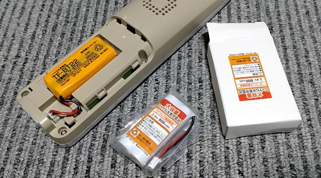 自宅で使っているコードレスホン子機のバッテリーが全然持たなくなったので、互換バッテリーをYahooショッピングで780円で購入。