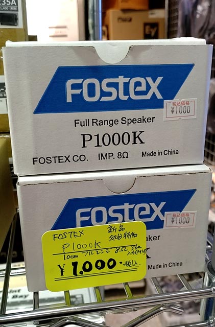ラジオ会館2Fのトモカ電気へ行くと、FOSTEXのスピーカーユニット「P1000K」が1本1000円で出ていた。