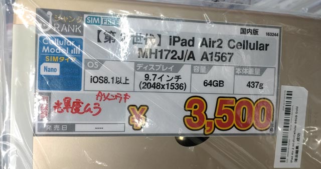 イオシスでiPadを漁ってみると、iPad Air2が3,500円で転がっていた!