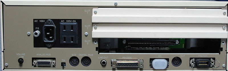 | 漢字ROMボード | 標準実装 文字構成 16*16ドット 文字種類 JIS第一水準の漢字(2965字)、非漢字(約700種) 画面構成 40文字*20行(専用高解像度ディスプレイ使用時) |